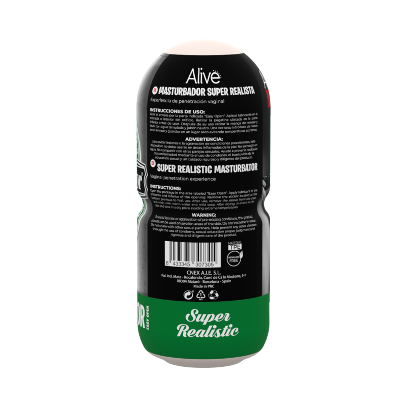 Masturbador masculino Súper realista. Su forma, flexibilidad y textura de la vagina ayudan a lograr una experiencia realista. Utilice el lubricante suministrado para pasar una noche más húmeda. características: