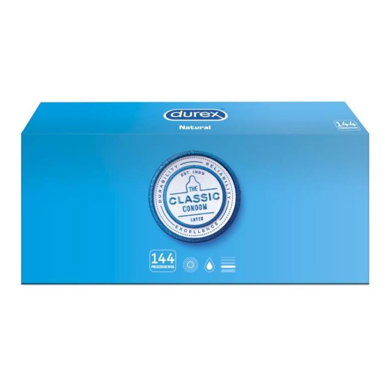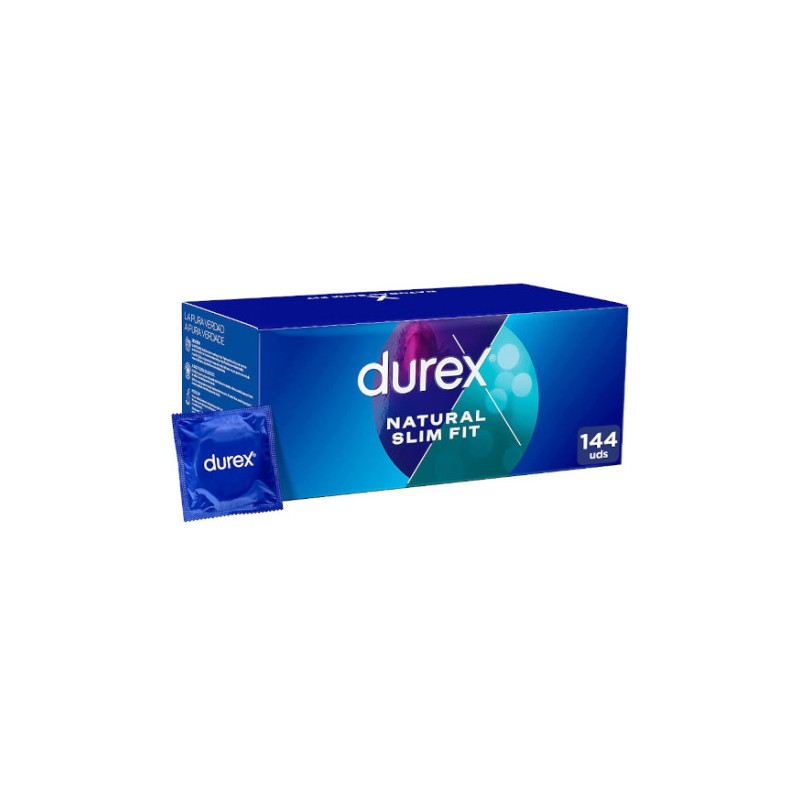 Preservativos Durex Natural Slim Fit, 144 uds para un ajuste cómodo y seguro.