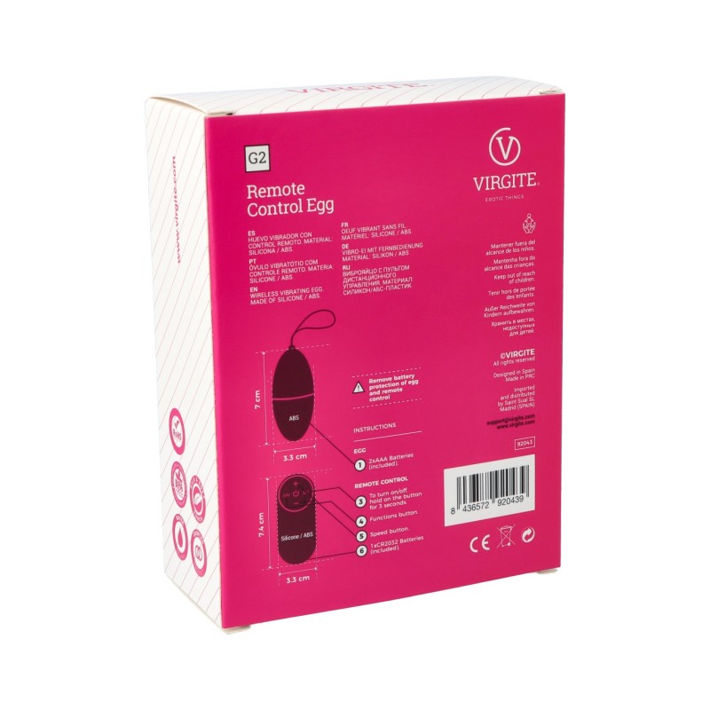 Sumérgete en el universo del placer con el Huevo Vibrador G2 Morado de VIRGITE - EGGS, una joya de la ingeniería erótica diseñada para despertar tus sentidos y elevar tus momentos de intimidad. Confeccionado con precisión en España, este dispositivo encapsula la esencia del disfrute a través de un diseño sofisticado y materiales de primera calidad.