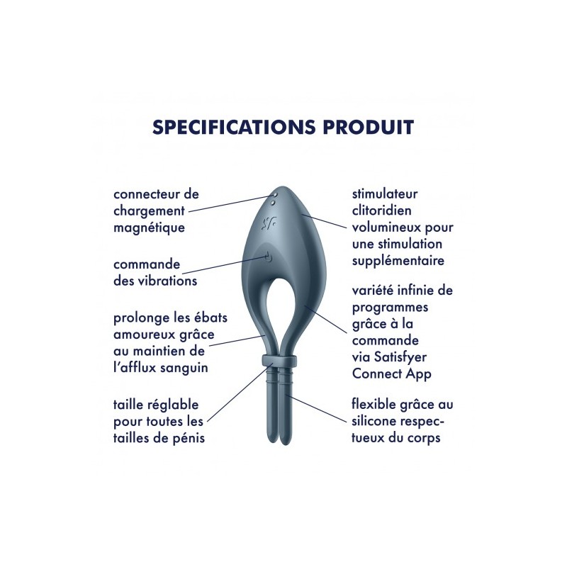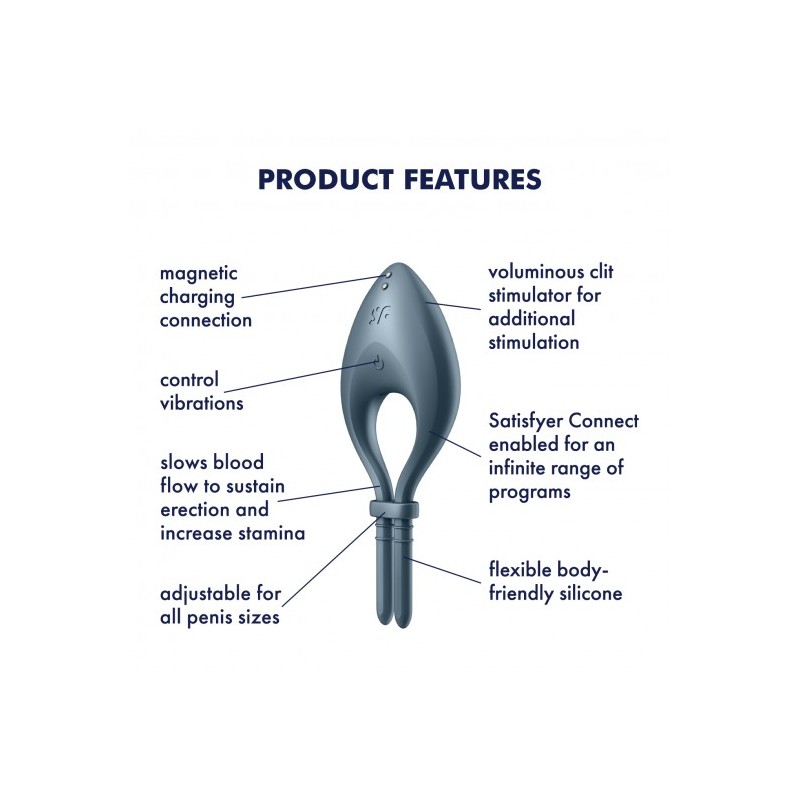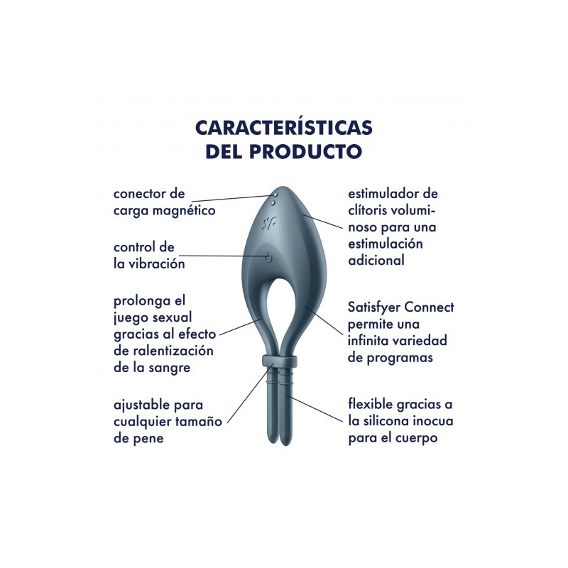 Este anillo vibrador cuenta con 12 programas de vibración que se pueden controlar fácilmente desde su botón frontal, o mediante la app Satisfyer Connect. La app ofrece la posibilidad de crear tus propios ritmos, sincronizar las vibraciones con tu música favorita desde Spotify, e incluso controlar el anillo a distancia a través de Internet, brindándote una libertad sin igual para experimentar.