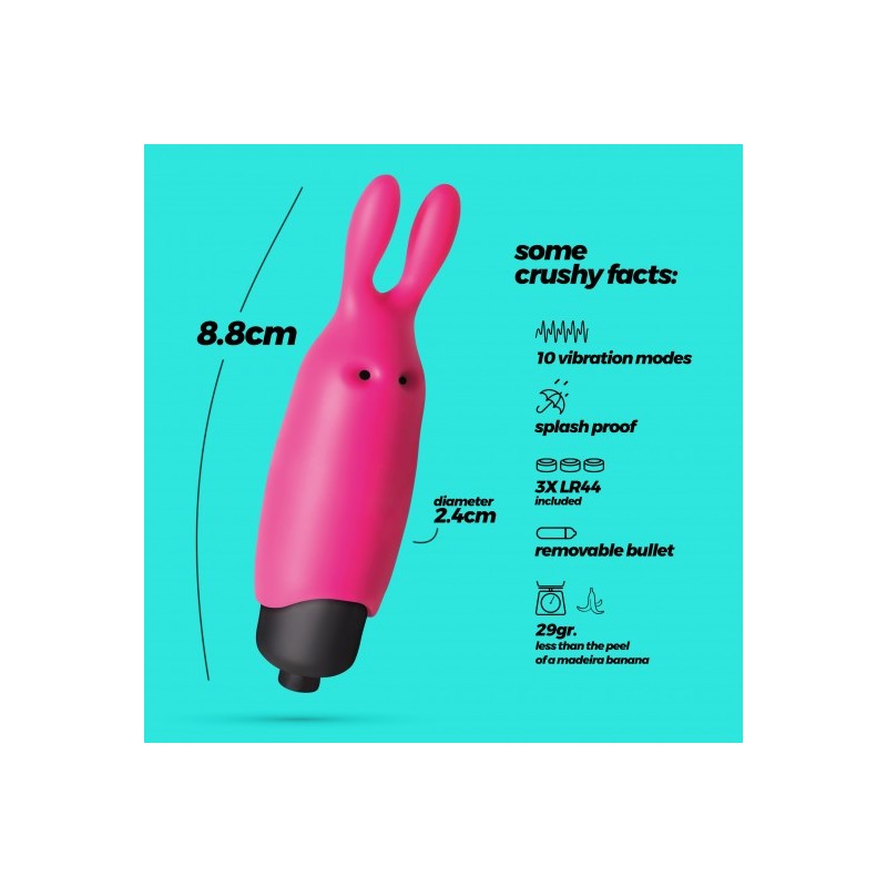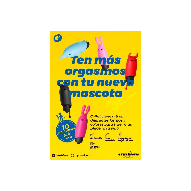 ¡Conoce a tu nueva y emocionante mascota! El O-Pet Conejo Vibrador Rosa de Crushious es el complemento perfecto para quienes buscan añadir placer y diversión a sus momentos más íntimos. Provoca a tu pareja o disfruta en solitario con este vibrador de bolsillo, diseñado para estimular cada zona erógena con sus 10 modos de vibración.