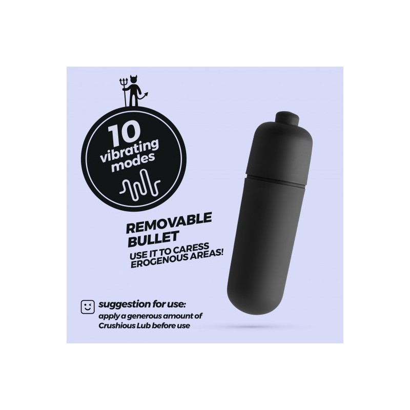 Este juguete funciona con 3 pilas LR44 (incluidas) y es extremadamente fácil de usar: basta con presionar el botón durante 2 segundos para encenderlo o apagarlo, y cambiar entre los modos con una pulsación rápida. Para una experiencia aún más placentera, te recomendamos utilizar lubricantes a base de agua como los de Crushious.