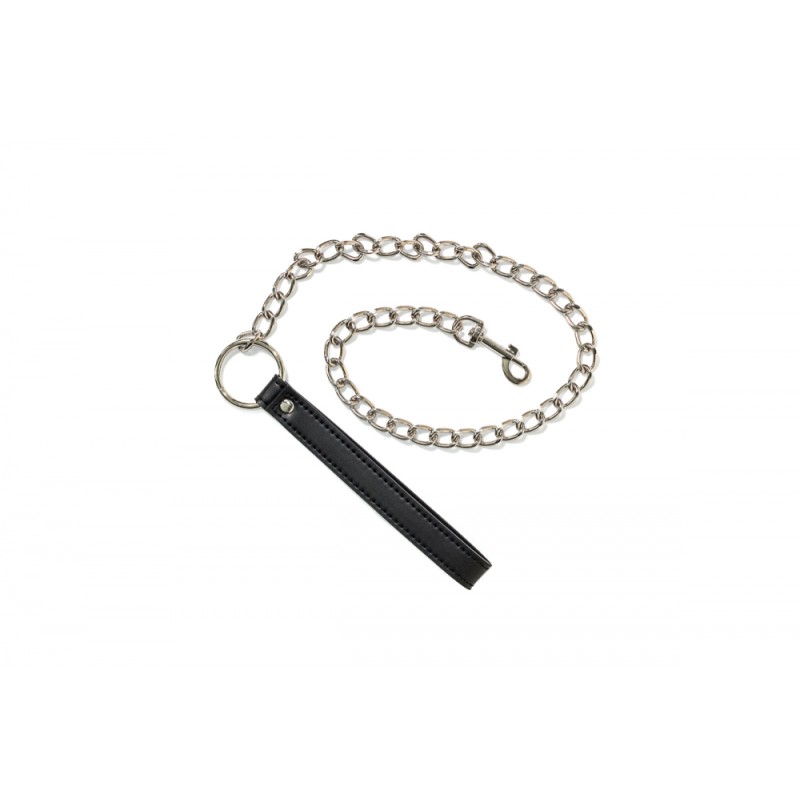 Explora el control y la confianza con la correa Party Hard. Cadena de metal resistente con mango de PVC, ideal para juegos BDSM.