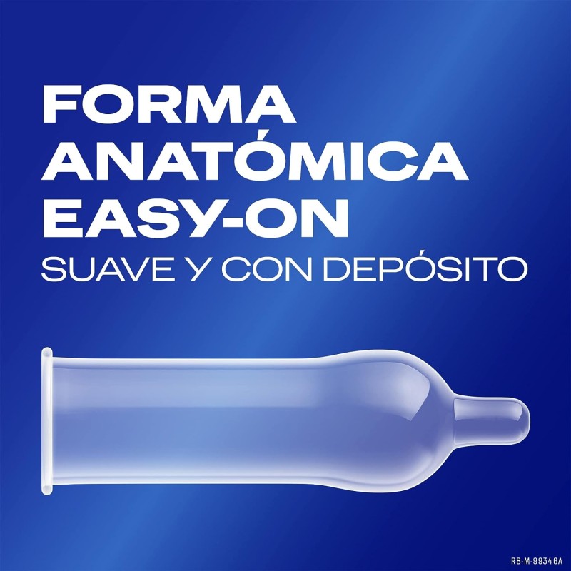 Este preservativo es transparente y Lubricado, y viene de forma anatómica Easy-On para una mayor comodidad y hacer más fácil su postura, es decir, mayor y mejor adaptabilidad para maximizar el placer. Su forma Easy-On evita que el condón se mueva y pueda desprenderse durante las relaciones, con la consecuencia de que quede depositado en el interior de la mujer.