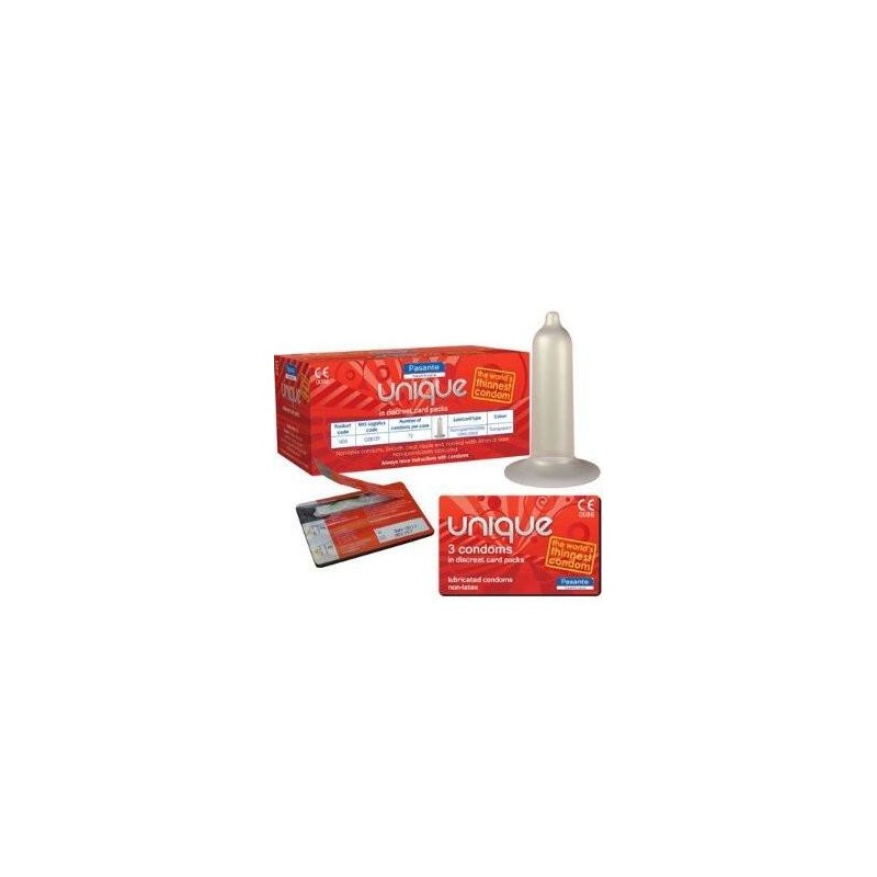 Los nuevos preservativos PASANTE UNIQUE son transparentes y muy naturales. Con tan sólo 0,015mm. de grosor se convierten en los condones más finos del mercado.