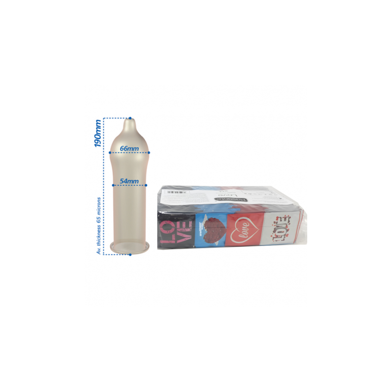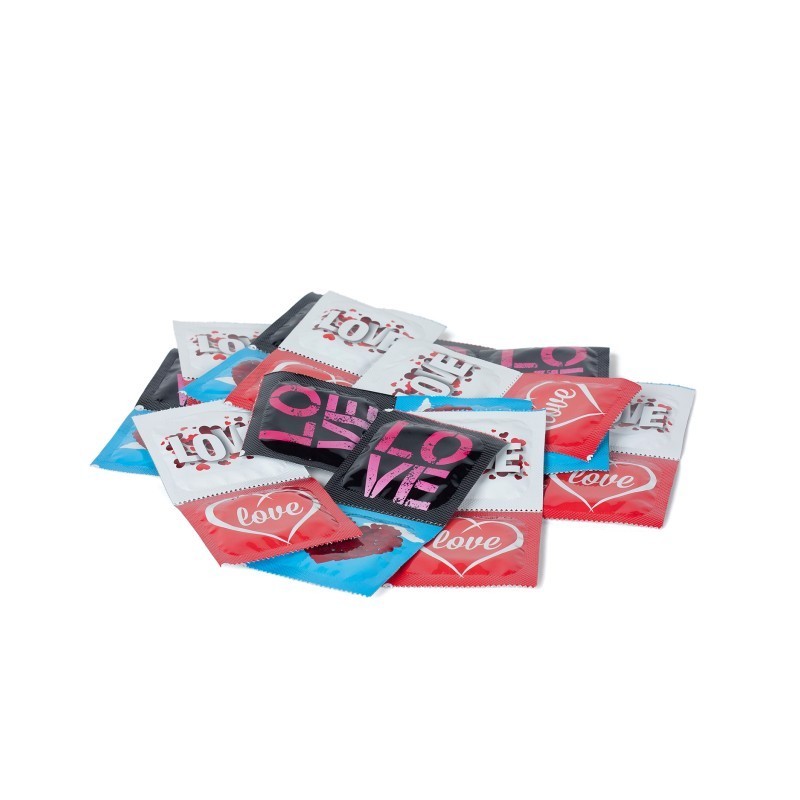 Los preservativos Pasante Love 144 Uds. vienen empacados individualmente en llamativos diseños relacionados con el tema del amor, como corazones y letras, para quienes aparte de pasar un momento lleno de pasión, desean sorprender a su pareja con su romanticismo natural.